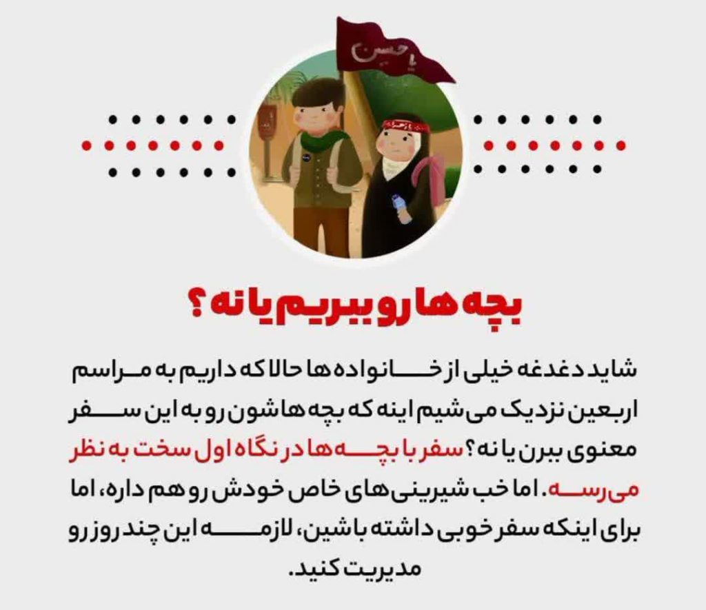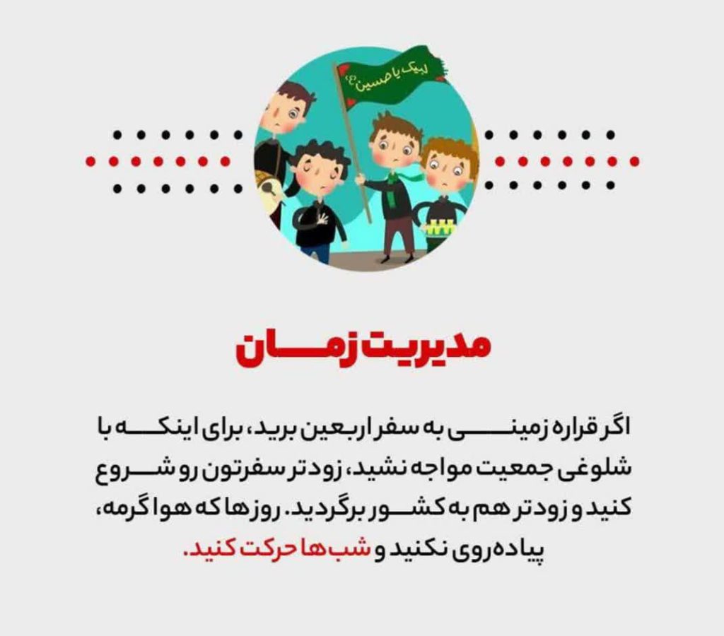 آثار گرافیکی, عکس نوشتهراهنمای پیاده روی اربعین ویژه در تاریخ 29 مرداد 140329 مرداد 1403 نویسنده: nabi مجموعه 11 پوستر راهنمای پیادهروی اربعین ویژه هیأت کودک دانلود به صورت یکجا- 1 مگابایت nabi توصیه های اربعینی مجموعه طرح «نائب الزیارة»- رهبر معظم انقلاب اسلامی