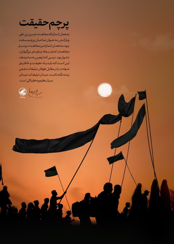 به همان اندازه که مجاهدت حسین بن علی و یارانش به عنوان صاحبان پرچم سخت بود، به همان اندازه نیز مجاهدت زینب و امام سجاد و بقیه ی بزرگواران دشوار بود درسی که اربعین به ما میدهد این است که باید یاد حقیقت و خاطره ی شهادت را در مقابل طوفان تبلیغات دشمن زنده نگه داشت میدان تبلیغات میدان بسیار عظیم و خطرناکی است.