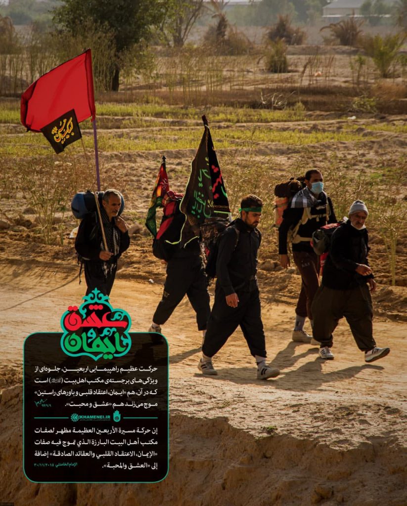 حرکت عظیم راهپیمایی اربعین جلوه ای از ویژگی های برجسته مکتب اهل بیت (ع) است که در آن، هم «ایمان، اعتقاد قلبی و باورهای راستین» موج می زند هم «عشق و محبت».