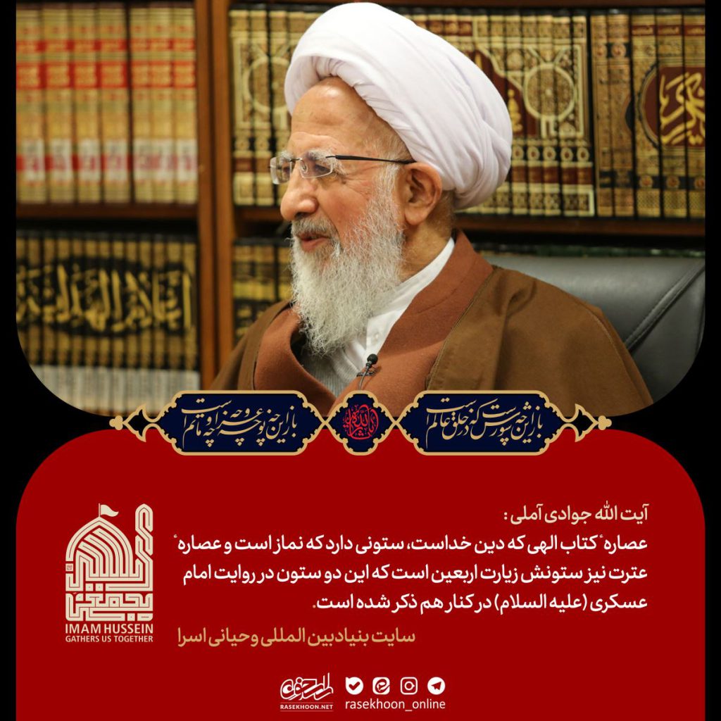 عصاره کتاب الهی که دین خداست ستونی دارد که نماز است و عصاره عترت نیز ستونش زیارت اربعین است که این دو ستون در روایت امام عسکری (علیه السلام) در کنار هم ذکر شده است
